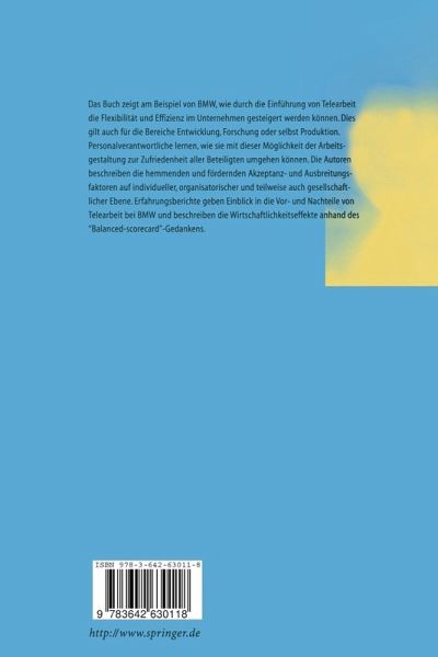 Das Buch zeigt am Beispiel von BMW, wie durch die Einführung von Telearbeit die Flexibilität und Effizienz im Unternehmen gesteigert werden können. Dies gilt auch für die Bereiche Entwicklung, Forschung oder selbst Produktion. Personalverantwortliche lernen, wie sie mit dieser Möglichkeit der Arbeitsgestaltung zur Zufriedenheit aller Beteiligten umgehen können. Die Autoren beschreiben die hemmenden und fördernden Akzeptanz- und Ausbreitungsfaktoren auf individueller, organisatorischer und teilweise auch gesellschaftlicher Ebene. Erfahrungsberichte geben Einblick in die Vor- und Nachteile von Telearbeit bei BMW und beschreiben die Wirtschaftlichkeitseffekte anhand des "Balanced-scorecard"-Gedankens.