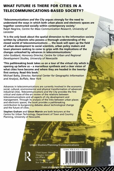 Advances in telecommunications are currently involved in the economic, social, cultural, environmental and physical transformation of advanced industrial cities. Telecommunications and the City provides the first critical and state-of-the-art review of the relations between telecommunications and all aspects of city development and management. Through its analysis of the links between urban places and electronic spaces, the book provides a pathbreaking contribution to burgeoning debates about technological change and the future of cities.