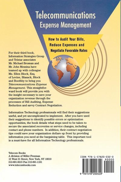 This straightforward book will provide you with the insight necessary to save your organization revenue through the processes of bill auditing, expense reduction, and savvy contract negotiations. Information technology professionals will find the authors' suggestions useful, and yet uncomplicated to implement. After you have used their suggestions to identify possible errors or optimization opportunities, the book details what steps need to be taken to secure the associated recoveries or service changes, including contact and phone numbers. In addition, their contract negotiation tips could save your organization dollars up front by providing information you need at the bargaining table. This important tool is a must-have for all information technology professionals. ;