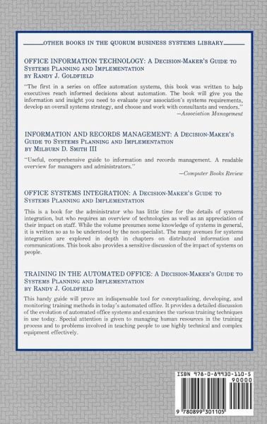This book is designed to help telecommunications managers prepare themselves and their companies for the 1990s by providing a practical guide to researching, buying, and consulting on office telecommunications systems. The author covers voice communications technologies and products, local, metropolitan, and wide area networks for data transmission, and the various bypass technologies available today, including satellite, microwave, and fiber optic based systems. A detailed section on management aspects of telecommunications discusses the process of defining company telecommunications requirements, strategic telecommunications planning, and future trends in telecommunications. Must reading for every telecommunications manager this book provides a solid basis for successful systems planning and trouble-free implementation.