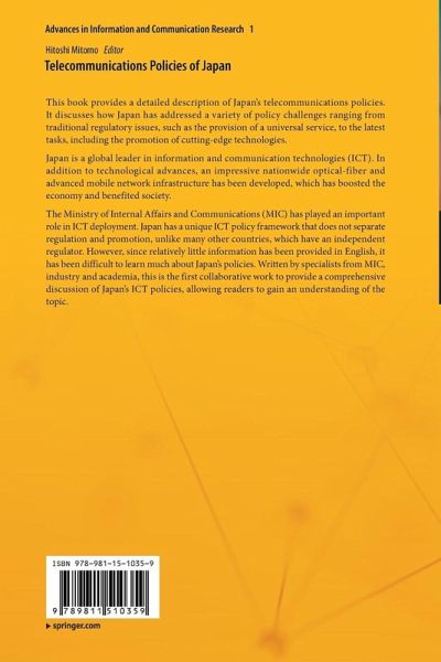 The Ministry of Internal Affairs and Communications (MIC) has played an important role in ICT deployment. Japan has a unique ICT policy framework that does not separate regulation and promotion, unlike many other countries, which have an independent regulator. However, since relatively little information has been provided in English, it has been difficult to learn much about Japan's policies. Written by specialists from MIC, industry and academia, this is the first collaborative work to provide a comprehensive discussion of Japan's ICT policies, allowing readers to gain an understanding of the topic.