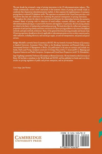 The past decade has seen a surge of pricing innovations in the U.S. telecommunications industry. This book systematically reviews recent innovations in the economic theory of pricing and extends results to the conditions that characterize telecommunications markets. The authors develop and illuminate the normative theory of pricing--with its objectives of social welfare, economic efficiency and fairness--and compare it with the practice of business and regulators.