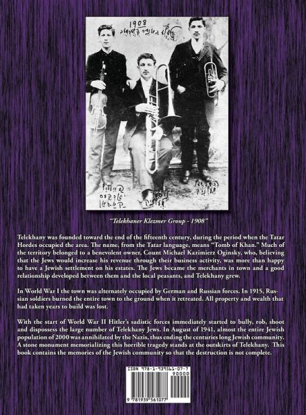 This book is the translation of the Telekhan Yizkor (Memorial) Book of the destroyed Jewish Community of Telekhan, Belarus, written by the former residents who survived the Holocaust (Shoah) or emigrated before the war. It contains the history of the community in addition to descriptions of the institutions (synagogues, prayer houses), cultural activities, personalities (Rabbis, leaders, prominent people, personalities) and other aspects of the town. It also describes the events of the Shoah in the town and lists the victims. All information are either first-hand accounts or based upon first-hand accounts and therefore serves as a primary resource for either research and to individuals seeking information about the town from which their parents, grandparents or great-grandparents had immigrated; this is their history! The book was originally written in Yiddish (and one short English article) in 1963, translated into English by David Goldman. Alternate names: Telekhany [Russian], Telchan [Yiddish], Telechany [Polish], Cielachany [Belarus], Telechon, Telekani, Telekhan, Telechan, Tselyakhani, Celjachany. Located in Belarus, 119 mi SW of Minsk at 52°31' North Latitude and 25°51' East Longitude.
