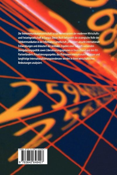 Die Telekommunikationswirtschaft ist das Nervensystem der modernen Wirtschafts- und Freizeitgesellschaft in Europa. Dieses Buch behandelt die strategische Rolle der Telekommunikation in der Informationsgesellschaft, präsentiert aktuelle internationale Entwicklungen und diskutiert die zentralen Aspekte einer zukunftsweisenden Deregulierungspolitik sowie Liberalisierungsoptionen in Deutschland und den EU-Partnerländern. Privatisierungsaspekte, das Phänomen internationaler Allianzen und langfristige Internationalisierungstendenzen werden in ihren wirtschaftlichen Bedeutungen analysiert.