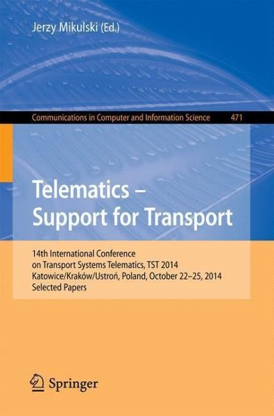 This book constitutes the proceedings of the 14th International Conference on Transport Systems Telematics, TST 2014, held in Katowice/Kraków and Ustron, Poland, in October 2014. The 49 papers included in this volume were carefully reviewed and selected from 125 submissions. The papers provide an overview of solutions being developed in the fields of transport telematics and intelligent transport systems.