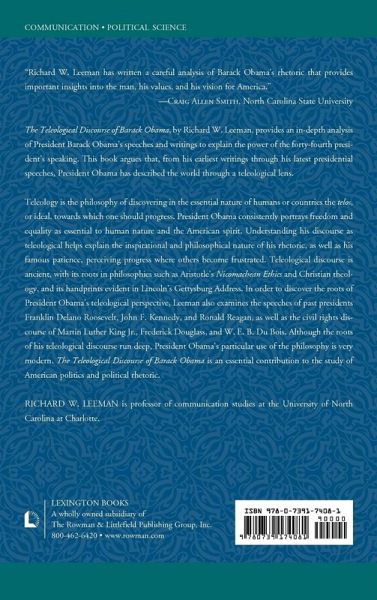 The Teleological Discourse of Barack Obama, by Richard Leeman, provides an in-depth analysis of President Barack Obama's speeches and writings to explain the power of the 44th president's speaking. This book argues that, from his earliest writings through his latest presidential speeches, Obama has described the world through a teleological lens. Teleology is the philosophy of discovering in the essential nature of humans or countries the telos, or ideal, towards which one should progress. Obama consistently portrays freedom and equality as essential to human nature and the American spirit. Understanding his discourse as teleological helps explain the inspirational and philosophical nature of his rhetoric, as well as his famous patience, perceiving progress where others become frustrated. Teleological discourse is ancient, with its roots in philosophies such as Aristotle's Nicomachean Ethics and Christian theology, and its handprints evident in Lincoln's Gettysburg Address. In order to discover the roots of Obama's teleological perspective, Leeman also examines the speeches of presidents Franklin Roosevelt, John F. Kennedy, and Ronald Reagan, as well as the civil rights discourse of Martin Luther King, Jr., Frederick Douglass, and W. E. B. Du Bois. Although the roots of his teleological discourse run deep, President Obama's particular use of the philosophy is very modern. The Teleological Discourse of Barack Obama is an essential contribution to the study of American politics and political rhetoric. Watch the author discuss the book here.