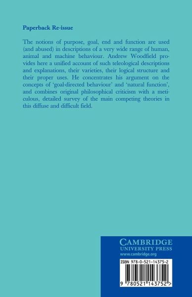 The notions of purpose, goal, end and function are used (and abused) in descriptions of a very wide range of human, animal and machine behaviour. Andrew Woodfield provides here a unified account of such teleological descriptions and explanations, their varieties, their logical structure and their proper uses. He concentrates his argument on the concepts of 'goal-directed behaviour' and 'natural function', and combines original philosophical criticism with a meticulous, detailed survey of the main competing theories in this diffuse and difficult field.