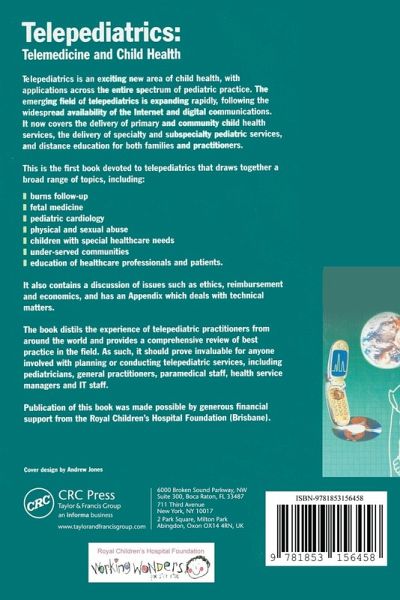 Recommended to all health professionals currently working or planning to set up services in paediatrics and telemedicine. This book is written by an international team of contributors who are working with paediatric telemedicine services. It covers a broad spectrum of topics: Specialist services: including Fetal medicine, Child psychiatry , Diabetes , Asthma, Burns, Paediatric surgery clinics, Sexual abuse, Tele-ophthalmology, Teleradiology and image transfer, Tele-ENT Primary and community services: including Telemedicine and under-served communities (US and developing countries), Palliative care, Rehabilitation, Telephone help lines for parents Education services including: Education of doctors - Grand Rounds in Queensland, Australia, Educational videoconferences for parents in the Bronx, and websites for parents and children