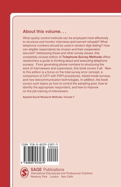 What quality control methods can be used most effectively to structure and monitor interviews and convert refusals? What telephone numbers should be used in random digit dialling? How can eligible respondents be chosen and their cooperation secured? Addressing these and other survey issues, this book offers researchers a guide to thinking about and executing telephone surveys from generating phone numbers to structuring the work of interviewers and supervisors. New to this edition are a focus on the total survey error concept, a comparison of CATI (computer-assisted telephone interviews) with PAPI (paper and pencil inventory) procedures, mixed-mode surveys and new telecommunication technologies. In addition, the book covers such topics as h