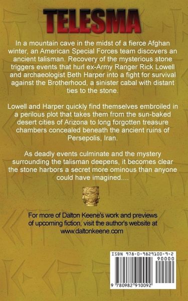 In a mountain cave in the midst of a fierce Afghan winter, an American Special Forces team discovers an ancient talisman. Recovery of the mysterious stone triggers events that hurl ex-Army Ranger Rick Lowell and archaeologist Beth Harper into a fight for survival against the Brotherhood, a sinister cabal with distant ties to the stone. Lowell and Harper quickly find themselves embroiled in a perilous plot that takes them from the sun-baked desert cities of Arizona to long forgotten treasure chambers concealed beneath the ancient ruins of Persepolis, Iran. As deadly events culminate and the mystery surrounding the talisman deepens, it becomes clear the stone harbors a secret more ominous than anyone could have imagined....