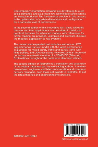 Contemporary information networks are developing to meet social demands, and as a result new technologies and systems are being introduced. The fundamental problem in this process is the optimization of system dimensions and configuration for a particular level of performance. In the second edition of this innovative text, basic teletraffic theories and their applications are described in detail and practical formulae for advanced models, with references for further reading, are provided. Examples and exercises illustrate the theories' application to real systems. The revised and expanded text includes sections on ATM (asynchronous transfer mode) with the latest performance evaluations for mixed bursty traffic and bursty traffic with finite buffers, and LANs (local area networks) with an improved performance evaluation method for CSMD/CD (Ethernet). Explanations throughout the book have also been refined. The second edition of Teletraffic is a translation and expansion of the original Japanese text by two leading authors. It enables researchers, engineers and telecommunication and computer network managers, even those not experts in teletraffic, to put the latest theories and engineering into practice.