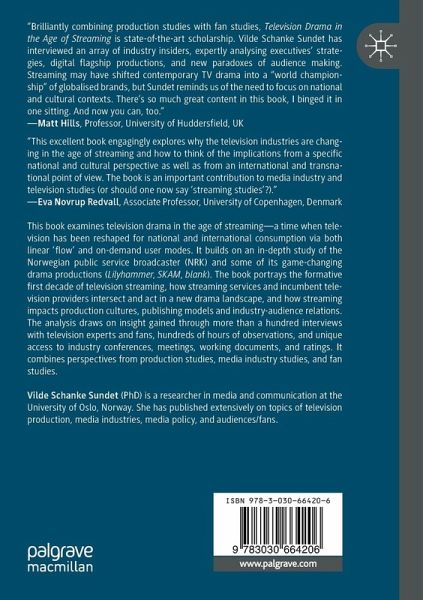 This book examines television drama in the age of streaming-a time when television has been reshaped for national and international consumption via both linear 'flow' and on-demand user modes. It builds on an in-depth study of the Norwegian public service broadcaster (NRK) and some of its game-changing drama productions (Lilyhammer, SKAM, blank). The book portrays the formative first decade of television streaming (2010-2019), how new streaming services and incumbent television providers intersect and act in a new drama landscape, and how streaming impacts existing television production cultures, publishing models and industry-audience relations. The analysis draws on insight gained through more than a hundred interviews with television experts and fans, hundreds of hours of observations, and unique access to industry conferences, meetings, working documents, and ratings. The book combines perspectives from production studies, media industry studies, and fan studies to informits analysis.