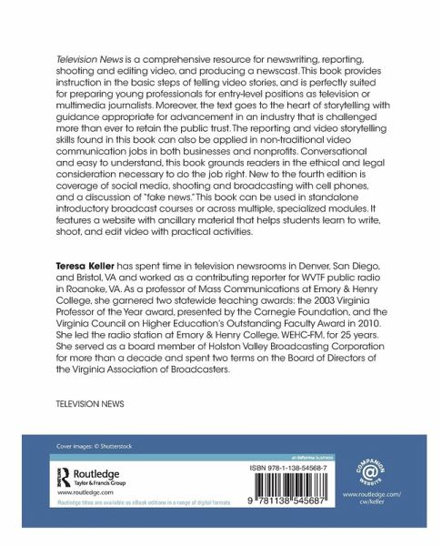 Television News is a comprehensive resource for newswriting, reporting, shooting and editing video, and producing a newscast. This book provides instruction in the basic steps of telling video stories, and is perfectly suited for preparing young professionals for entry-level positions as television or multimedia journalists. Moreover, the text goes to the heart of storytelling with guidance appropriate for advancement in an industry that is challenged more than ever to retain the public trust. The reporting and video storytelling skills found in this book can also be applied in non-traditional video communication jobs in both businesses and nonprofits. Conversational and easy to understand, this book grounds readers in the ethical and legal consideration necessary to do the job right. New to the fourth edition is coverage of social media, shooting and broadcasting with cell phones, and a discussion of "fake news." This book can be used in standalone introductory broadcast courses or across multiple, specialized modules. It features a website with ancillary material that helps students learn to write, shoot, and edit video with practical activities.