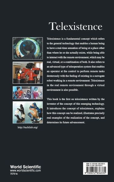Telexistence is fundamentally a concept named for the general technology that enables a human being to have a real-time sensation of being at a place other than where he or she actually exists, and being able to interact with the remote environment, which may be real, virtual, or a combination of both. It also refers to an advanced type of teleoperation system that enables an operator at the control to perform remote tasks dexterously with the feeling of existing in a surrogate robot working in a remote environment. Telexistence in the real environment through a virtual environment is also possible. This will be the first book on telexistence written by the inventor of the concept of this emerging technology. It introduces the concept of telexistence, explains how this concept can be realized, illustrates precisely real examples of the realization of the concept, and prospects its future advancement.