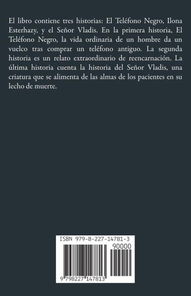 El libro contiene tres historias: El Teléfono Negro, Ilona Esterhazy, y el Señor Vladis. En la primera historia, El Teléfono Negro, la vida ordinaria de un hombre da un vuelco tras comprar un teléfono antiguo. La segunda historia es un relato extraordinario de reencarnación. La última historia cuenta la historia del Señor Vladis, una criatura que se alimenta de las almas de los pacientes en su lecho de muerte.