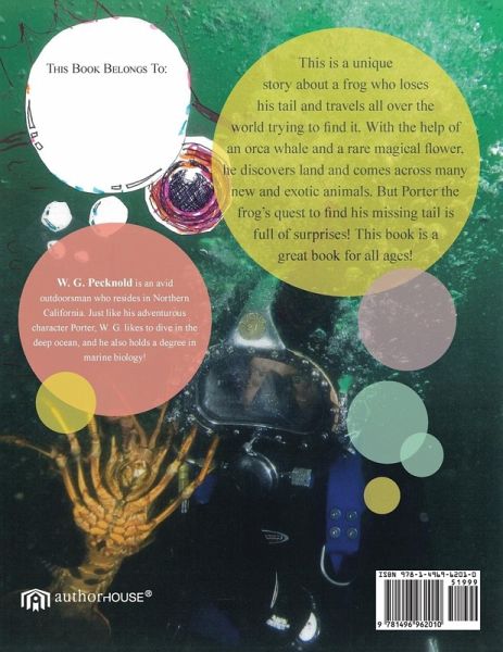 This is a unique story about a frog who loses his tail and travels all over the world trying to find it. With the help of an orca whale and a rare magical flower, he discovers land and comes across many new and exotic animals. But Porter the frog's quest to find his missing tail is full of surprises! This book is a great book for all ages!