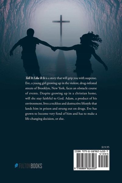 Tell It Like It Is is a story that will grip you with suspense. Eve, a young girl growing up in the violent, drug-infested streets of Brooklyn, New York, faces an obstacle course of events. Despite growing up in a christian home, will she stay faithful to God. Adam, a product of his environment, lives a reckless and destructive lifestyle that lands him in prison and strung out on drugs. Eve has grown to become very fond of him and has to make a life-changing decision, or else.