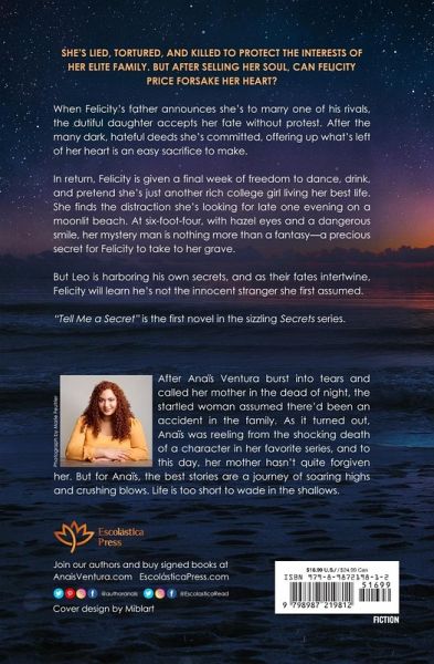 She's lied, tortured, and killed to protect the interests of her elite family. But after selling her soul, can Felicity Price forsake her heart? When Felicity's father announces she's to marry one of his rivals, the dutiful daughter accepts her fate without protest. After the many dark, hateful deeds she's committed, offering up what's left of her heart is an easy sacrifice to make. In return, Felicity is given a final week of freedom to dance, drink, and pretend she's just another rich college girl living her best life. She finds the distraction she's looking for late one evening on a moonlit beach. At six-foot-four, with hazel eyes and a dangerous smile, her mystery man is nothing more than a fantasy-a precious secret for Felicity to take to her grave. But Leo is harboring his own secrets, and as their fates intertwine Felicity will learn he's not the innocent stranger she first assumed. "Tell Me a Secret" is the first novel in the sizzling Secrets series. This book contains mature content, including references to alcohol and drug use, sexual themes, abuse, assault, blood, torture, and death.