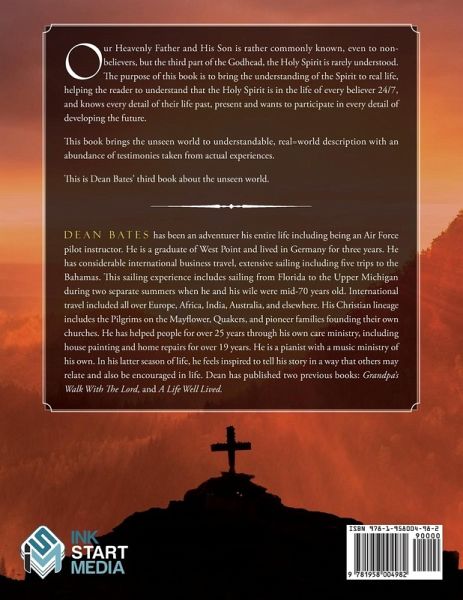 Our Heavenly Father and His Son is rather commonly known, even to non-believers, but the third part of the Godhead, the Holy Spirit is rarely understood. The purpose of this book is to bring the understanding of the Spirit to real life,helping the reader to understand that the Holy Spirit is in the life of every believer 24/7, and knows every detail of their life past, present and wants to participate in every detail of developing the future.This book brings the unseen world to understandable, real=world description with an abundance of testimonies taken from actual experiences. This is Dean Bates' third book about the unseen world.