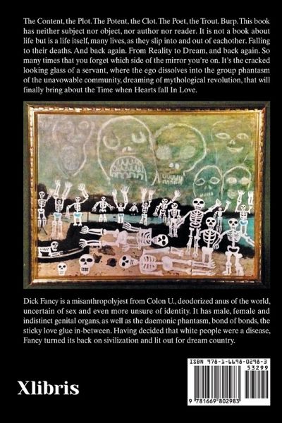 The Content, the Plot. The Potent, the Clot. The Poet, the Trout. Burp. This book has neither subject nor object, nor author nor reader. It is not a book about life but is a life itself, many lives, as they slip into and out of eachother. Falling to their deaths. And back again. From Reality to Dream, and back again. So many times that you forget which side of the mirror you're on. It's the cracked looking glass of a servant, where the ego dissolves into the group phantasm of the unavowable community, dreaming of mythological revolution, that will finally bring about the Time when Hearts fall In Love.