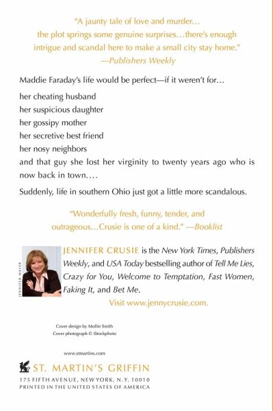 Maddie Faraday's life would be perfect--if it weren't for her cheating husband her suspicious daughter her gossipy mother her secretive best friend her nosy neighbors, and that guy she lost her virginity to twenty years ago... In Tell Me Lies, Jennifer Cruise dishes up a funny, sexy, suspenseful novel about small-town secrets, big-time betrayals and the redemptive power of love, laughter and chocolate brownies.