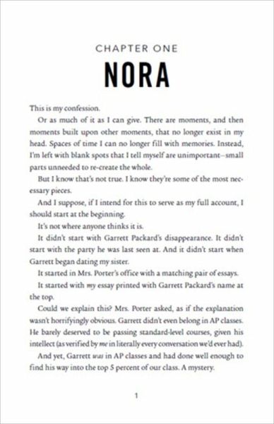TWO SISTERS. ONE GIRL'S BOYFRIEND GOES MISSING AND HER SISTER ISTHE PRIMARY SUSPECTWhen her boyfriend Garrett disappears, Sophie knows that he leftthat party with straight-A sister Nora. With the sisters' futuresand lives in jeopardy, they'll have to decide whether to trust eachother again, or risk their secrets leading them to their graves.