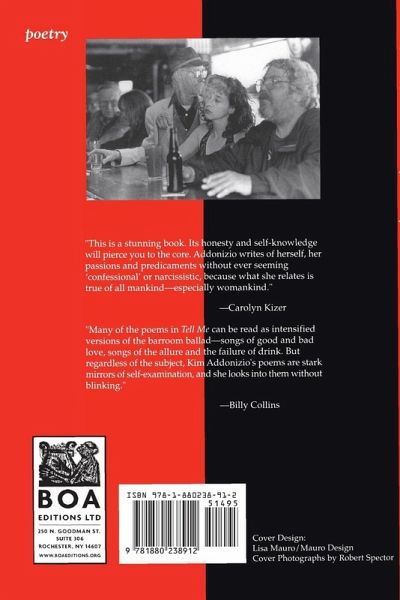 Kim Addonizio is the author of Tell Me, a finalist for the 2000 National Book Award for Poetry. She is co-author with Dorianne Laux of The Poet's Companion: A Guide to the Pleasures of Writing Poetry. Addonizio's first collection, The Philosopher's Club, received the 1994 Great Lakes New Writers' Award and a Silver Medal from the Commonwealth Club of California. She holds a master's degree in creative writing from San Francisco State University and is the recipient of two fellowships from the National Endowment for the Arts, and a Pushcart Prize. She lives in San Francisco.