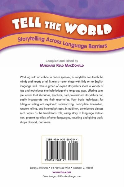 Working with or without a native speaker, a storyteller can touch the minds and hearts of all listeners-even those with little or no English language skills. Here a group of expert storytellers share a variety of tips and techniques that help bridge the language gap; along with sample stories that librarians, teachers, and professional storytellers can easily incorporate into their repertoires. Four basic techniques for bilingual telling are explored: summarizing, line-by-line translation, tandem telling, and inserted phrases. In addition, contributors discuss such topics as the translator's role, using story in language instruction, presenting tellers of other languages, traveling and giving workshops abroad, and more.
