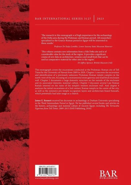This monograph covers the excavations conducted at the Ptolemaic-Roman city of Tell Timai by the University of Hawaii from 2009 - 2020. It is divided into four parts. Chapter 1 concerns the excavation and identification of a previously unknown Ptolemaic-Roman temple complex in the north-west of the site, focusing on a monumental stone gateway and mud brick enclosure wall. Chapter 2 documents a large domestic structure on the outside of the enclosure and its associated domestic material culture. Chapter 3 discusses several Late Roman burials interred on the ruins of the temple's western enclosure wall. And Part 4 analyses the initial excavations of a 2nd century Roman temple in the centre of the city, as well as the extensive pre-temple occupation layers and architecture found beneath, which potentially had later usage as a church.