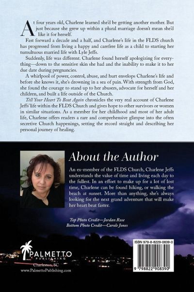 Through a beautiful and happy-go-lucky childhood, to a confusing adolescence, abusive marriage, and finally freedom, Charlene Jeffs takes readers on a wandering journey through the joys and heartaches of her life within the FLDS Church. Charlene was raised in the FLDS church by a loving mother and father, brothers, and sisters. Her childhood seemed nearly "normal" as she interacted with other kids her age, went to school, and learned how to complete important chores. Once she became a teenager, Charlene saw the winds begin to change in her life. Soon enough, she was beckoned with her father and mother to "Uncle Roy's" office, where she was informed she'd been picked to be Lyle Jeffs wife because she's a "good, morally clean girl." Initial excitement turned sour after several years, and Charlene's marriage deteriorated by the day as Warren Jeffs changed the group. Desperate for a way out, Charlene sacrifices much of her life to regain her freedom from an organization she once loved. In Charlene's heartfelt and comprehensive memoir, readers will travel through stages of her life, walking her steps and experiencing what she lived through within the FLDS. Ultimately winning her freedom and the freedom of her beloved children, Charlene's story is a testament to the strength of abuse survivors and meant to help outsiders understand the reality in which she lived. Survivors of abuse, ex-fundamentalists, and readers interested in FLDS memoirs will enjoy Tell Your Heart To Beat Again's revealing and unfeigned narrative.