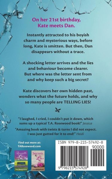 On her 21st birthday, Kate meets Dan. Instantly attracted to his boyish charm and mysterious ways, before long, she has fallen for him big time. After he suddenly disappears without a trace, a shocking letter arrives, and his lies and behaviour become clearer. But where is the letter coming from and why did Dan keep this such a big secret? What does Kate's future now hold when she finds out about her own hidden past? This new psychological thriller will keep you guessing how Kate's life will turn out for everyone involved and how many people have been Telling Lies. What readers are saying..."I've cried, I've laughed, I couldn't put it down. That just sums up a typical T.A. Rosewood book "Definitely on track to being my top read this year. It's gonna be hard to beat." "Wow, you got me crying again! Your books just get better and better each time!" "Wow!!!! I absolutely loved it. I was thoroughly engrossed I couldn't put it down." "An excellent storyline that just kept building right to the end."