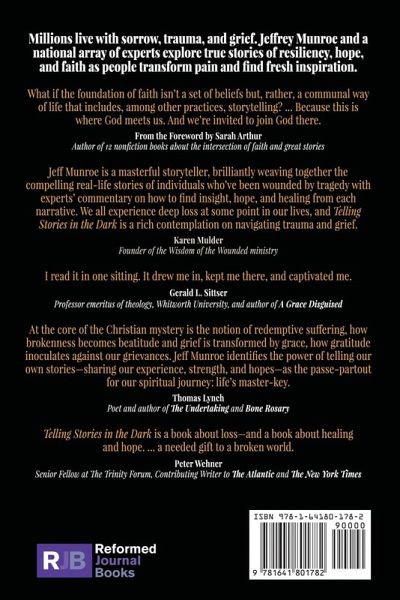 In the darkest corners of our lives, where sorrow, trauma, grief and pain reside, there exists a profound capacity for resilience and hope. Telling Stories in the Dark by Jeffrey Munroe is a uniquely inspiring non-fiction book that illuminates the transformative power of sharing our most profound experiences of suffering. Within the pages of this remarkable compilation, you will encounter the stories of ordinary individuals who, when confronted with profound adversity, chose to do something extraordinary: they transformed their pain. Munroe, a skilled storyteller and compassionate guide, takes us on a poignant journey through the lives of these remarkable individuals who have harnessed the redemptive potential of their suffering, what Munroe's mentor Frederick Buechner calls "the stewardship of pain." When we tell our stories, and when we listen well to each other's stories, we discover much about what it means to be human. We discover there are others like us. We discover our feelings aren't unusual. We discover we aren't alone. And sometimes we discover God in the midst of our stories. In the Foreword, Sarah Arthur, the author of a dozen of her own inspiring books, describes Telling Stories in the Dark as helping readers to rediscover "a faith that finds itself in the dark. Here in these pages, that's what you'll find. Story after story of those who walk a similar road. Conversations with those who suffer about how they do -- or don't -- experience the God who promises never to leave us nor forsake us. Before intellectually exploring any of his chosen topics, Jeff embeds those topics in the lived reality of ordinary people on their worst possible days. Because this is where God meets us." Karen Mulder, founder of the Wisdom of the Wounded ministry, writes: "Jeff Munroe is a masterful storyteller, brilliantly weaving together the compelling real-life stories of individuals who've been wounded by tragedy with experts' commentary on how to find insight, hope and healing from each narrative. We all experience deep loss at some point in our lives, and Telling Stories in the Dark is a rich contemplation on navigating trauma and grief." Among the many authors, scholars and counselors you will meet in the chapters of this book are the late Frederick Buechner, the bestselling author who is one of Munroe's mentors, plus Roger Nelson, pastor of Hope Christian Reformed Church in Oak Forest, Illinois; clinical psychologist Daniel Rooks; scholar and author Marilyn McEntyre; Mitch Kinsinger, pastor of Arlington Hills Lutheran Church in St. Paul, Minnesota; therapist Mary Anderson; Suzanne McDonald and Chuck DeGroat, professors at Western Theological Seminary; poet Rosemerry Wahtola Trommer; pastor Sophie Mathonnet-VanderWell; Yale University professor emeritus Nicholas Wolterstorff; and artist Makoto Fujimura. This book is a poignant reminder that no matter how deep our wounds may be, we possess the innate ability to transform our pain into a source of strength and growth. Through the power of sharing our stories, Munroe invites us to connect with these brave individuals, each of whom has found a unique path to healing, and in doing so, he illuminates the collective potential for resilience that exists within us all. Telling Stories in the Dark is ideal for individual reflection and group discussion. It's a great gift for friends who are grieving, because Telling Stories is guaranteed to leave readers inspired, uplifted, and deeply moved.