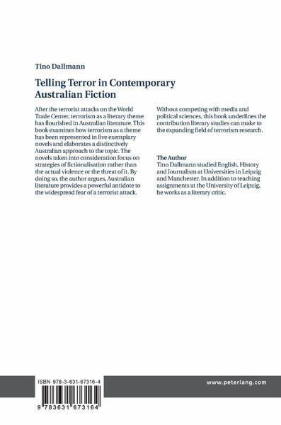 After the terrorist attacks on the World Trade Center, terrorism as a literary theme has flourished in Australian literature. This book examines how terrorism as a theme has been represented in five exemplary novels and elaborates a distinctively Australian approach to the topic. The novels taken into consideration focus on strategies of fictionalisation rather than the actual violence or the threat of it. By doing so, the author argues, Australian literature provides a powerful antidote to the widespread fear of a terrorist attack. Without competing with media and political sciences, this book underlines the contribution literary studies can make to the expanding field of terrorism research.