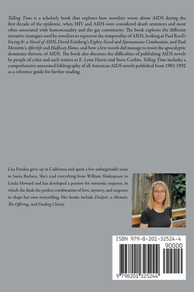 Telling Time is a scholarly book that explores how novelists wrote about AIDS during the first decade of the epidemic, when HIV and AIDS were considered death sentences and most often associated with homosexuality and the gay community. The book explores the different narrative strategies used by novelists to represent the temporality of AIDS, looking at Paul Reed's Facing It: a Novel of AIDS, David Feinberg's Eighty-Sixed and Spontaneous Combustion, and Paul Monette's Afterlife and Halfway Home, and how a few novels did manage to resist the apocalyptic dominant rhetoric of AIDS. The book also discusses the difficulties of publishing AIDS novels by people of color and such writers as E. Lynn Harris and Steve Corbin. Telling Time includes a comprehensive annotated bibliography of all American AIDS novels published from 1982-1992 as a reference guide for further reading.