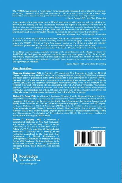Ethnic minority children now comprise over 75 percent of students in 100 of the largest cities in the United States. However, these students have not been given equal access to, nor benefited from, the contemporary mental health system as have their non-minority peers. TEMAS (Tell-Me-A-Story) Assessment in Multicultural Societies examines the health/mental care system in which professional service providers, including psychologists, labor to offer quality care for youth in the United States. The authors ardently support the use of the TEMAS assessment instrument as a useful tool for diagnosis of all youngsters, particularly its use on the growing population of minority children and adolescents. Part I presents a rationale and context for employing TEMAS. Introductory chapters describe the mental health status of the population at-risk, as well as systems of care for youth where assessment and intervention are components. Topics to follow highlight a history of positive TEMAS test reviews with the detail required by instructors for preparing dedicated TEMAS courses. The volume thoroughly outlines cross-cultural studies and illustrates case examples of European-American, Hispanic/Latino, Asian-American, and forensic studies. TEMAS (Tell-Me-A-Story) Assessment in Multicultural Societies brings practical insight to instructors who teach standard assessment courses; clinicians, counselors, and school psychologists; assessment specialists; and administrators concerned with mental health services designed for children and adolescents.