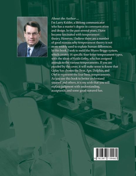 Larry Kidder, MA, is a lifelong communicator and student of human behavior. Several years back, he discovered temperament theory, and it has changed his life. Though he is not a trained therapist, he completed a number of family therapy courses. Researching a variety of temperament websites based on Jung, Briggs and Myers, Kiersey, Golay, and others, he has pulled from each to create a coherent and cohesive presentation of temperament. Add in Golay's animal families and temperament theory immediately becomes more applicable and memorable for the layperson-especially romantic partners.