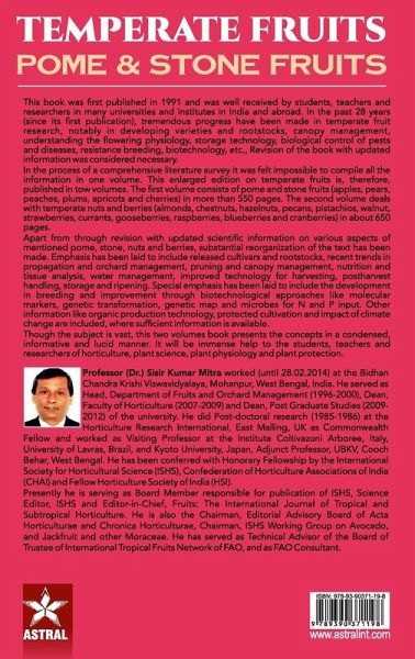 This book was first published in 1991 and was well received by students, teachers and researchers in many universities and institutes in India and abroad. In the past 28 years (since its first publication), tremendous progress have been made in temperate fruit research, notably in developing varieties and rootstocks, canopy management, understanding the flowering physiology, storage technology, biological control of pests and diseases, resistance breeding, biotechnology, etc., Revision of the book with updated information was considered necessary. In the process of a comprehensive literature survey it was felt impossible to compile all the information in one volume. This enlarged edition on temperate fruits is, therefore, published in tow volumes. The first volume consists of pome and stone fruits (apples, pears, peaches, plums, apricots and cherries) in more than 550 pages. The second volume deals with temperate nuts and berries (almonds, chestnuts, hazelnuts, pecans, pistachios, walnut, strawberries, currants, gooseberries, raspberries, blueberries and cranberries) in about 650 pages. Apart from through revision with updated scientific information on various aspects of mentioned pome, stone, nuts and berries, substantial reorganization of the text has been made. Emphasis has been laid to include released cultivars and rootstocks, recent trends in propagation and orchard management, pruning and canopy management, nutrition and tissue analysis, water management, improved technology for harvesting, postharvest handling, storage and ripening. Special emphasis has been laid to include the development in breeding and improvement through biotechnological approaches like molecular markers, genetic transformation, genetic map and microbes for N and P input. Other information like organic production technology, protected cultivation and impact of climate change are included, where sufficient information is available. Though the subject is vast, this two volumes book presents the concepts in a condensed, informative and lucid manner. It will be immense help to the students, teachers and researchers of horticulture, plant science, plant physiology and plant protection.