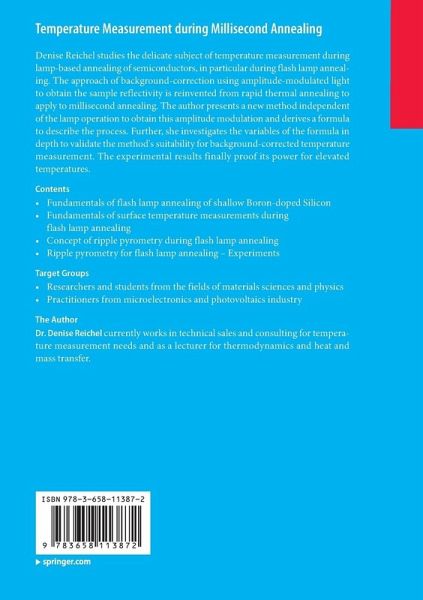 Denise Reichel studies the delicate subject of temperature measurement during lamp-based annealing of semiconductors, in particular during flash lamp annealing. The approach of background-correction using amplitude-modulated light to obtain the sample reflectivity is reinvented from rapid thermal annealing to apply to millisecond annealing. The author presents a new method independent of the lamp operation to obtain this amplitude modulation and derives a formula to describe the process. Further, she investigates the variables of the formula in depth to validate the method's suitability for background-corrected temperature measurement. The experimental results finally proof its power for elevated temperatures.