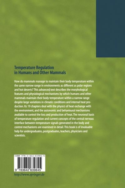 How do mammals manage to maintain their body temperature within the same narrow range in environments as different as polar regions and hot deserts? This advanced text describes the morphological features and physiological mechanisms by which humans and other mammals maintain their body temperature within a narrow range despite large variations in climatic conditions and internal heat production. Its 19 chapters deal with the physics of heat exchange with the environment, and the autonomic and behavioural mechanisms available to control the loss and production of heat. The neuronal basis of…mehr