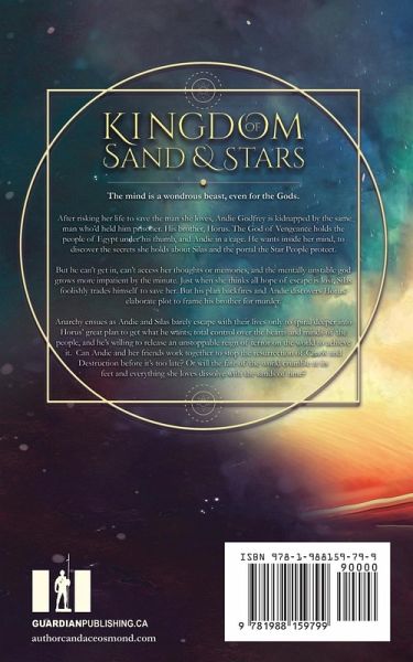 The mind is a wondrous beast, even for the Gods. After risking her life to save the man she loves, Andie Godfrey is kidnapped by the same man who'd held him prisoner. His brother, Horus. The God of Vengeance holds the people of Egypt under his thumb, and Andie in a cage. He wants inside her mind, to discover the secrets she holds about Silas and the portal the Star People protect. But he can't get in, can't access her thoughts or memories, and the mentally unstable god grows more impatient by the minute. Just when she thinks all hope of escape is lost, Silas foolishly trades himself to save her. But his plan backfires and Andie discovers Horus' elaborate plot to frame his brother for murder. Anarchy ensues as Andie and Silas barely escape with their lives only to spiral deeper into Horus' great plan to get what he wants; total control over the hearts and minds of the people, and he's willing to release an unstoppable reign of terror on the world to achieve it. Can Andie and her friends work together to stop the resurrection of Chaos and Destruction before it's too late? Or will the fate of the world crumble at its feet and everything she loves dissolve with the sands of time? Fans of OUTLANDER, THE MUMMY, TOMB RAIDER, and STARGATE are going to devour the Kingdom of Sand & Stars series!