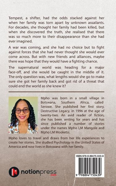 Tempest, a shifter, had the odds stacked against her when her family was torn apart by unknown assailants. For decades, she thought her family had been killed, but when she discovered the truth, she realised that there was so much more to their disappearance than she had ever imagined. A war was coming, and she had no choice but to fight against forces that she had never thought she would ever come across. But with new friends and alliances, maybe there was hope that they would have a fighting chance. The supernatural world was heading for a major face-off, and she would be caught in the middle of it. The only question was, what lengths would she go to make sure she got her family back and got rid of a threat that could end the world as she knew it?
