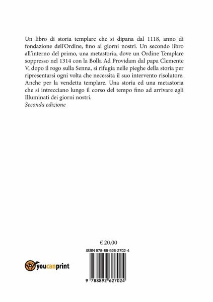 Un libro di storia templare che si dipana dal 1118, anno di fondazione dell'Ordine, fino ai giorni nostri. Un secondo libro all'interno del primo, una metastoria, dove un Ordine Templare soppresso nel 1314 con la Bolla Ad Providam dal papa Clemente V, dopo il rogo sulla Senna, si rifugia nelle pieghe della storia per ripresentarsi ogni volta che necessita il suo intervento risolutore. Anche per la vendetta templare. Una storia ed una metastoria che si intrecciano lungo il corso del tempo fino ad arrivare agli Illuminati dei giorni nostri. Seconda edizione
