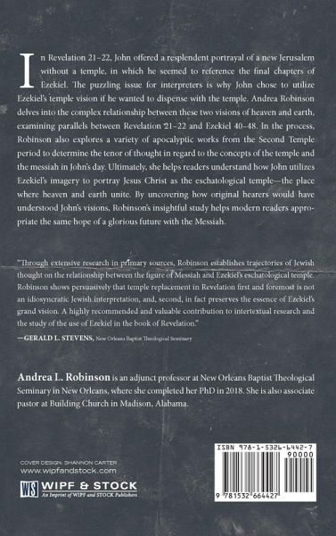 In Revelation 21-22, John offered a resplendent portrayal of a new Jerusalem without a temple, in which he seemed to reference the final chapters of Ezekiel. The puzzling issue for interpreters is why John chose to utilize Ezekiel's temple vision if he wanted to dispense with the temple. Andrea Robinson delves into the complex relationship between these two visions of heaven and earth, examining parallels between Revelation 21-22 and Ezekiel 40-48. In the process, Robinson also explores a variety of apocalyptic works from the Second Temple period to determine the tenor of thought in regard to the concepts of the temple and the messiah in John's day. Ultimately, she helps readers understand how John utilizes Ezekiel's imagery to portray Jesus Christ as the eschatological temple--the place where heaven and earth unite. By uncovering how original hearers would have understood John's visions, Robinson's insightful study helps modern readers appropriate the same hope of a glorious future with the Messiah.