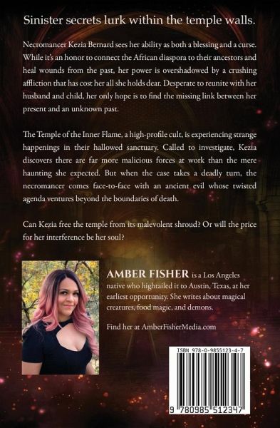 A New Age cult. A paranormal killing. How can Kezia Bernard defeat an enemy that's already claimed her soul? Necromancer Kezia Bernard's ability is both a blessing and a curse. While crossing to the other side to speak with the dead has its advantages, her power is overshadowed by a crushing affliction. One that has cost her all she holds dear. Her only hope for salvation is to finally find the missing link between her present and an unknown past. When a dear friend asks Kezia to investigate a haunting at the temple of a high-profile cult, she reluctantly agrees. But she is not prepared when one of the cult's members mysteriously burns to death by supernatural fire. She's even less prepared when she discovers the evil tormenting the temple has kindled the same scorching magic within her, too. If she can't destroy the source of the fire smoldering within her, even the powerful protection of her ancestors won't save her from a twisted fate that ventures far beyond death.