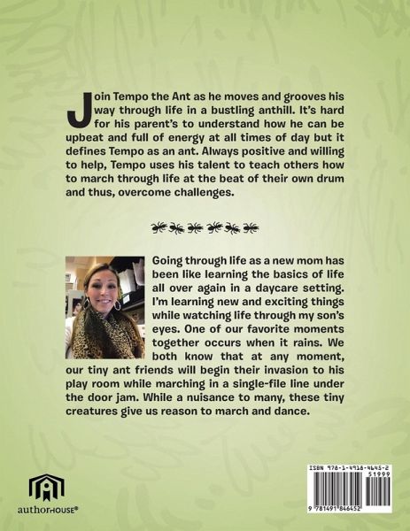 Join Tempo the Ant as he moves and grooves his way through life in a bustling anthill. It's hard for his parent's to understand how he can be upbeat and full of energy at all times of day but it defines Tempo as an ant. Always positive and willing to help, Tempo uses his talent to teach others how to march through life at the beat of their own drum and thus, overcome challenges.