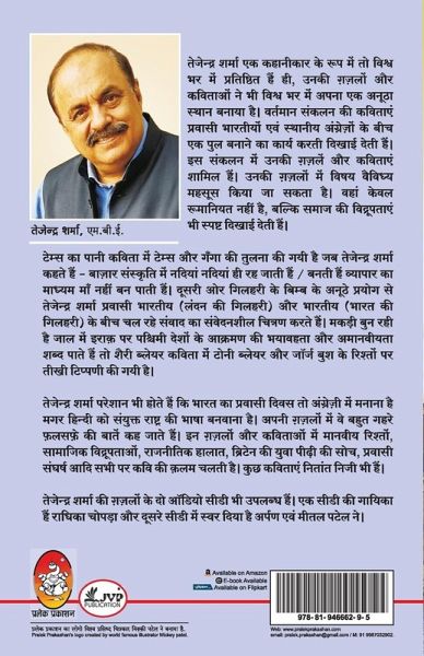 Tejendra Sharma MBE is the only Hindi writer to be honoured by the Queen of England for his contribution to Hindi literature. Tejendra, in his poetry, does not indulge in nostalgia. Instead he talks about the life in his adopted country, His aim is to build bridges between the immigrants and the local residents of the United Kingdom. The simple language and new symbols make his poetry readable as well as enjoyable. In his poetry we can get a social, political and degeneration of relationships in the British society. There are a few personal poems as well. He strikes a wonderful balance about his memories of India and his concerns for the United Kingdom. He declares himself as the poet of his adopted country:I am the poet of this country, I have adopted it, The soil of this country, Does not appear alien to me. This book would introduce the reader to a new type of a poetry. ¿¿¿¿¿¿¿¿¿ ¿¿¿¿¿ ¿¿.¿¿.¿. ¿¿¿¿¿ ¿¿ ¿¿¿¿¿¿¿ ¿¿¿ ¿¿¿¿¿¿ ¿¿¿¿¿¿¿¿¿¿ ¿¿¿ ¿¿¿¿¿¿¿ ¿¿¿¿¿¿¿ ¿¿ ¿¿¿¿¿¿¿ ¿¿ ¿¿¿¿¿¿ ¿¿¿¿¿¿¿ ¿¿ ¿¿¿¿¿¿ ¿¿ ¿¿¿¿ ¿¿¿¿¿¿¿¿ ¿¿¿¿ ¿¿¿ ¿¿¿¿¿¿¿¿¿ ¿¿¿¿ ¿¿¿¿¿¿¿ ¿¿¿ ¿¿¿¿ ¿¿¿¿¿¿¿¿¿¿¿ ¿¿ ¿¿¿ ¿¿¿¿ ¿¿¿¿¿ ¿¿¿¿ ¿¿¿¿¿¿¿¿ ¿¿ ¿¿¿¿ ¿¿¿¿¿ ¿¿¿ ¿¿¿ ¿¿ ¿¿¿¿¿¿¿¿¿¿ ¿¿ ¿¿¿¿¿¿ ¿¿¿¿ ¿¿¿ ¿¿ ¿¿ ¿¿¿ ¿¿¿¿¿¿ ¿¿¿¿ ¿¿¿¿¿¿¿ ¿¿¿ ¿¿¿ ¿¿ ¿¿¿¿¿ ¿¿ ¿¿¿¿ ¿¿¿¿¿ ¿¿¿ ¿¿¿¿¿¿¿ ¿¿ ¿¿¿ ¿¿¿¿ ¿¿¿ ¿¿ ¿¿¿¿¿¿ ¿¿ ¿¿ ¿¿¿ ¿¿¿ ¿¿ ¿¿¿¿ ¿¿¿¿¿¿ ¿¿¿¿¿ ¿¿ ¿¿¿ ¿¿ ¿¿¿¿ ¿¿¿ ¿¿ ¿¿¿¿¿¿ ¿¿ ¿¿¿¿¿¿¿ ¿¿¿ ¿¿¿¿¿¿¿ ¿¿ ¿¿¿¿¿¿¿ ¿¿¿ ¿¿¿¿¿¿¿¿ ¿¿¿¿¿¿¿¿ ¿¿ ¿¿¿¿ ¿¿ ¿¿¿ ¿¿ ¿¿¿ ¿¿, ¿¿¿¿¿¿¿ ¿¿¿ ¿¿¿ ¿¿¿ ¿¿¿¿¿¿ ¿¿ ¿¿ ¿¿¿¿¿¿ ¿¿¿¿¿ ¿¿¿¿ ¿¿¿ ¿¿¿¿ ¿¿¿¿¿ ¿¿ ¿¿¿ ¿¿ ¿¿¿¿¿¿¿¿¿ ¿¿ ¿¿ ¿¿¿ ¿¿¿¿¿¿¿ ¿¿¿¿¿ ¿¿ ¿¿¿¿¿¿¿¿ ¿¿ ¿¿¿¿ ¿¿¿¿ ¿¿¿¿¿¿¿ ¿¿ ¿¿¿ ¿¿¿¿¿ ¿¿¿ :-¿¿¿ ¿¿¿ ¿¿¿ ¿¿ ¿¿¿ ¿¿...,¿¿¿¿¿ ¿¿¿ ¿¿¿¿¿¿ ¿¿ ,¿¿¿¿ ¿¿¿¿¿ ¿¿¿, ¿¿ ¿¿ ¿¿¿ ¿¿ ¿¿¿¿¿¿, ¿¿¿¿ ¿¿¿¿ ¿¿¿¿ ¿¿¿¿...¿¿ ¿¿¿¿¿ ¿¿¿¿¿¿ ¿¿ ¿¿ ¿¿¿¿¿ ¿¿ ¿¿¿¿¿ ¿¿ ¿¿¿¿¿¿ ¿¿ ¿¿¿¿¿ ¿¿¿¿¿¿ ¿¿¿ ¿¿¿ ¿¿¿¿.