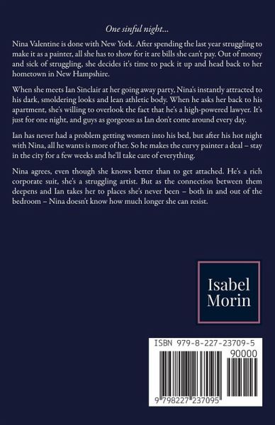 Nina Valentine is done with New York. After spending the last year struggling to make it as a painter, all she has to show for it are bills she can't pay. Out of money and sick of struggling, she decides it's time to pack it up and head back to her hometown in New Hampshire. When she meets Ian Sinclair at her going away party, Nina's instantly attracted to his dark, smoldering looks and lean athletic body. When he asks her back to his apartment, she's willing to overlook the fact that he's a high-powered lawyer. It's just for one night, and guys as gorgeous as Ian don't come around every day. Ian has never had a problem getting women into his bed, but after his hot night with Nina, all he wants is more of her. So he makes the curvy painter a deal - stay in the city for a few weeks and he'll take care of everything. Nina agrees, even though she knows better than to get attached. He's a rich corporate suit, she's a struggling artist. But as the connection between them deepens and Ian takes her to places she's never been - both in and out of the bedroom - Nina doesn't know how much longer she can resist.
