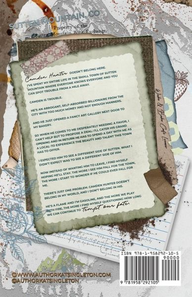 Camden Hunter doesn't belong here. I've spent my entire life in the small town of Sutten Mountain where everyone knows everyone and you can spot trouble from a mile away. Camden is trouble. He's an arrogant, self-absorbed billionaire from the city with too much money and not enough manners. And he just opened a fancy art gallery next door to my bakery. So when he comes to me desperately needing a favor, I can't help but to propose a deal: I'll cater his grand opening and in return he has to spend a day with me as a local-to experience the beauty and talent this town has to offer. I expected him to see a different side of Sutten. What I didn't expect was to see a different side of him. Now instead of wanting him to leave, I find myself hoping he'll stay. The more I see him fall for the town, the more I start to wonder if he could ever fall for me. There's just one problem. Camden Hunter doesn't belong in my world, and I don't belong in his. He's a flame and I'm gasoline, and the more we play with fire, the more I find myself questioning how long we can continue to tempt our fate. Tempt Our Fate is a steamy small town, enemies to lovers, billionaire, age gap romance. It is the second book set in the fictional town of Sutten Mountain. It is a complete standalone.