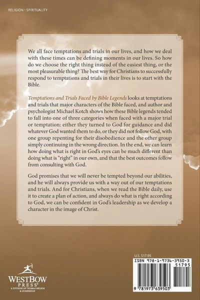 We all face temptations and trials in our lives, and how we deal with these times can be defining moments in our lives. So how do we choose the right thing instead of the easiest thing, or the most pleasurable thing? The best way for Christians to successfully respond to temptations and trials in their lives is to start with the Bible. Temptations and Trials Faced by Bible Legends looks at temptations and trials that major characters of the Bible faced, and author and psychologist Michael Kotch shows how these Bible legends tended to fall into one of three categories when faced with a major…mehr