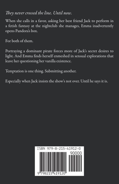 They never crossed the line. Until now. When she calls in a favor, asking her best friend Jack to perform in a fetish fantasy at the nightclub she manages, Emma inadvertently opens Pandora's box. For both of them. Portraying a dominant pirate forces more of Jack's secret desires to light. And Emma finds herself enmeshed in sensual explorations that leave her questioning her vanilla existence. Temptation is one thing. Submitting another. Especially when Jack insists the show's not over. Until he says it is.